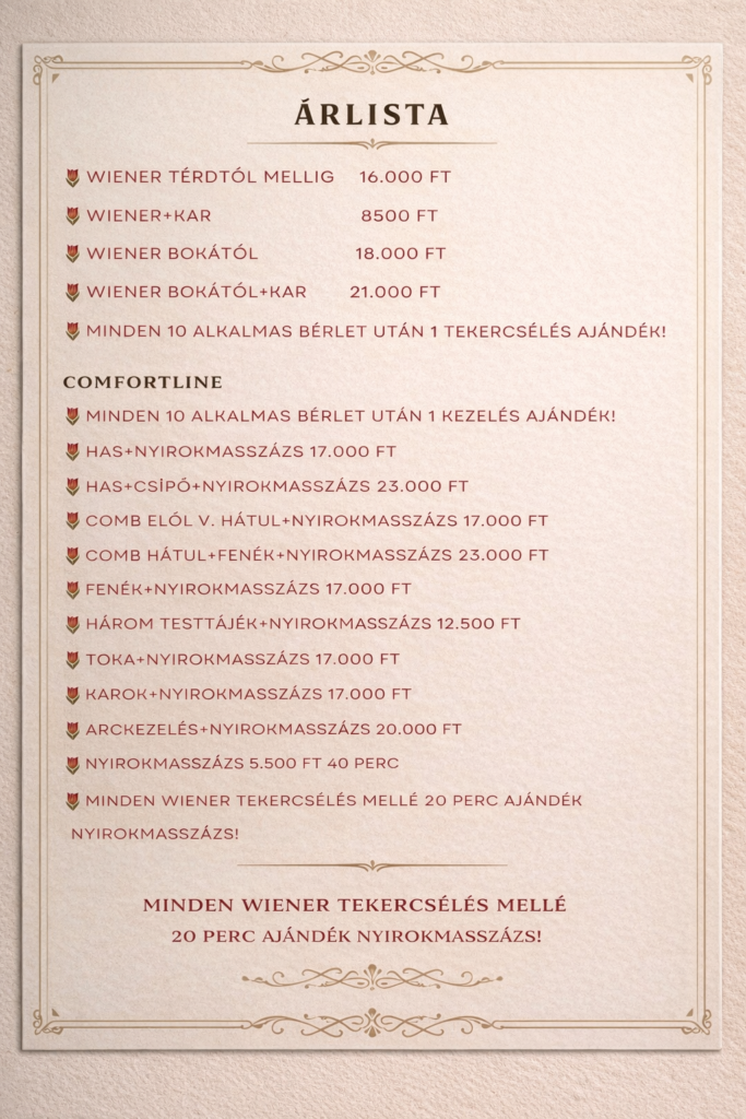 Wiener tekercselés + kar 75 perc 11.000/45.000/98.000 Ft